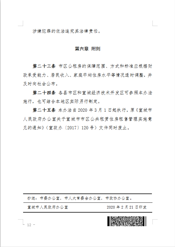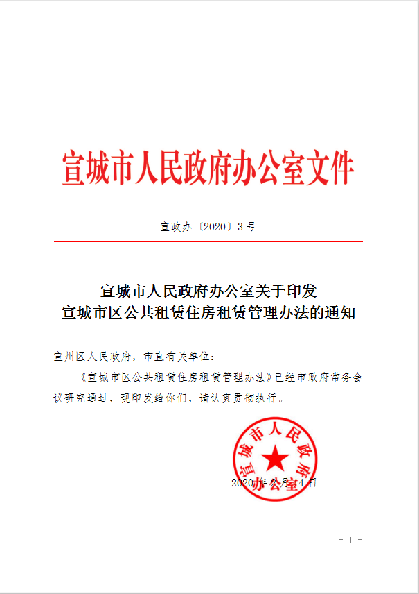 宣城市人民政府办公室关于印发宣城市市区公共租赁住房租赁管理办法的通知
